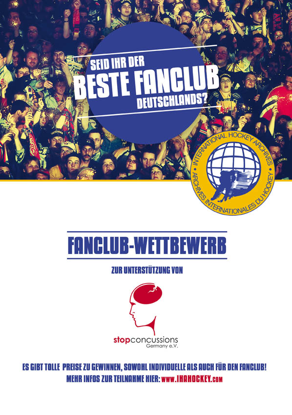 Als Teil unseres Hockey Karten Projekts mit dem Ziel, Gelder zu sammeln für „Stop Concussions & Safespace Project“, initiieren wir einen Wettbewerb, an dem sich jeder Fanclub beteiligen kann. Der Entwurf dieses Projektes ist nachzulesen unter: http://www.ihahockey.com/English.html oder http://www.ihahockey.com/Deutsch.html